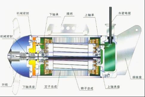 4.潛水?dāng)嚢铏C(jī)電機(jī)繞組為F級(jí)絕緣,防護(hù)等級(jí)為IP68,選用一次潤滑免維護(hù)進(jìn)口軸承,具有油室泄漏檢測(cè)和電機(jī)繞組過熱保 護(hù)功能,使電機(jī)的工作更加安全可靠。