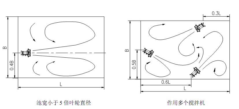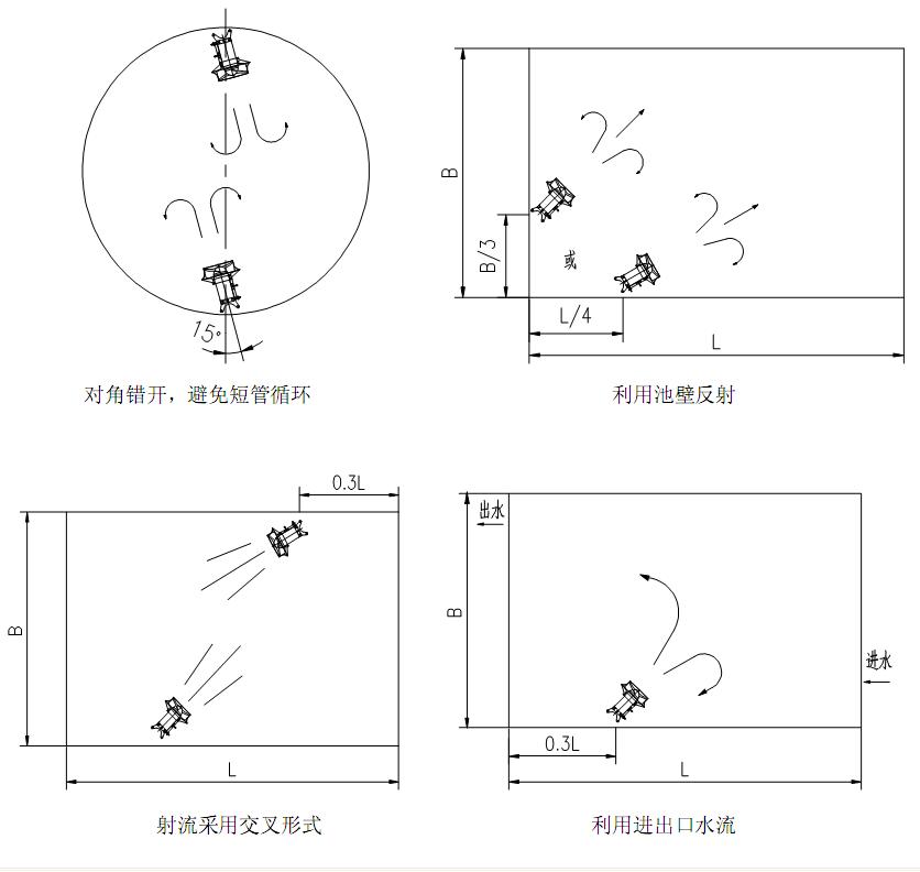 3.潛水?dāng)嚢铏C(jī)與曝氣系統(tǒng)配合使用可使能耗大幅度降低,充氧量明顯提高,有效防止沉淀。